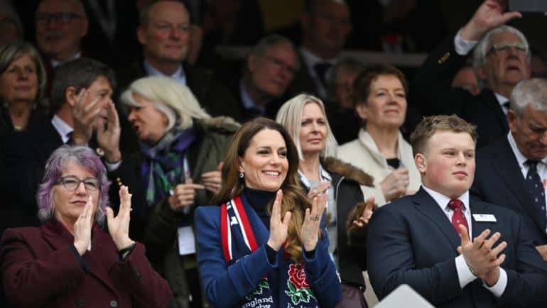 Принцесата на Уелс Кейт Мидълтън направи самостоятелна поява в събота на стадиона в Туикънъм, където присъства на двубоя между Англия и Ирландия от последния кръг на турнира „Шестте нации“. Посещението беше отбелязано с отделяне от обичайните съпроводи: принц Уилям и децата не бяха в публиката, а Кейт се появи сама на трибуните и изглеждаше концентрирана върху срещата.